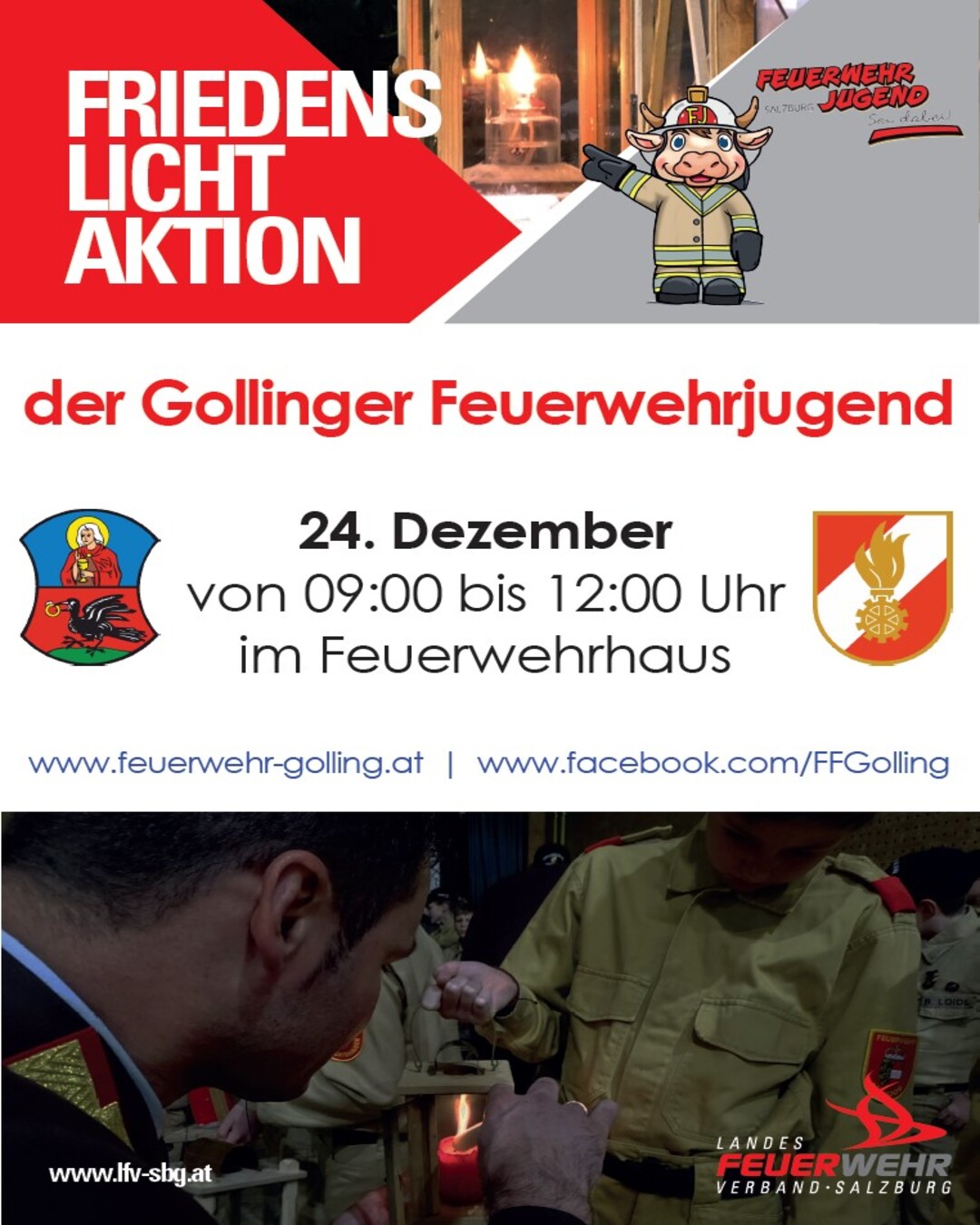 Auch dieses Jahr verteilt die Feuerwehrjugend Golling am 24. Dezember das Friedenslicht aus Bethlehem.