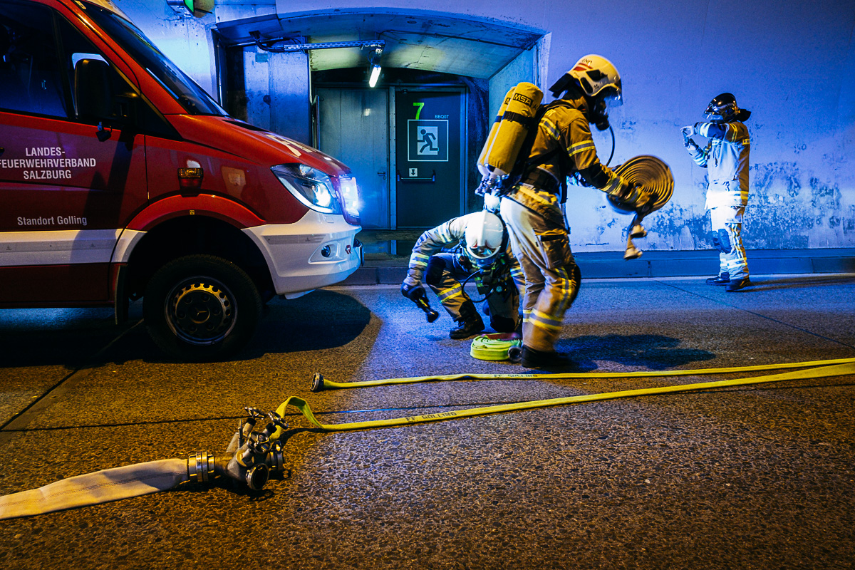 Zweimal im Jahr, im Zuge der Tunnelreinigung, ist es für die Freiwillige Feuerwehr Golling möglich eine Tunnelübung durchzuführen. An dieser Übung nahmen zusätzlich die Mannschaft der Freiwilligen Feuerwehr Kuchl sowie als Übungsbeobachter die Freiwillige Feuerwehr Hallein teil. Der Fokus wurde speziell auf die taktische Vorgehensweise gelegt, welche in einer neu gegründeten Arbeitsgruppe "Tunneleinsatz" ausgearbeitet wurde. Seit letzten Jahr gibt es auch einen speziellen Tunneleinsatz Lehrgang an der Landesfeuerwehrschule Salzburg.