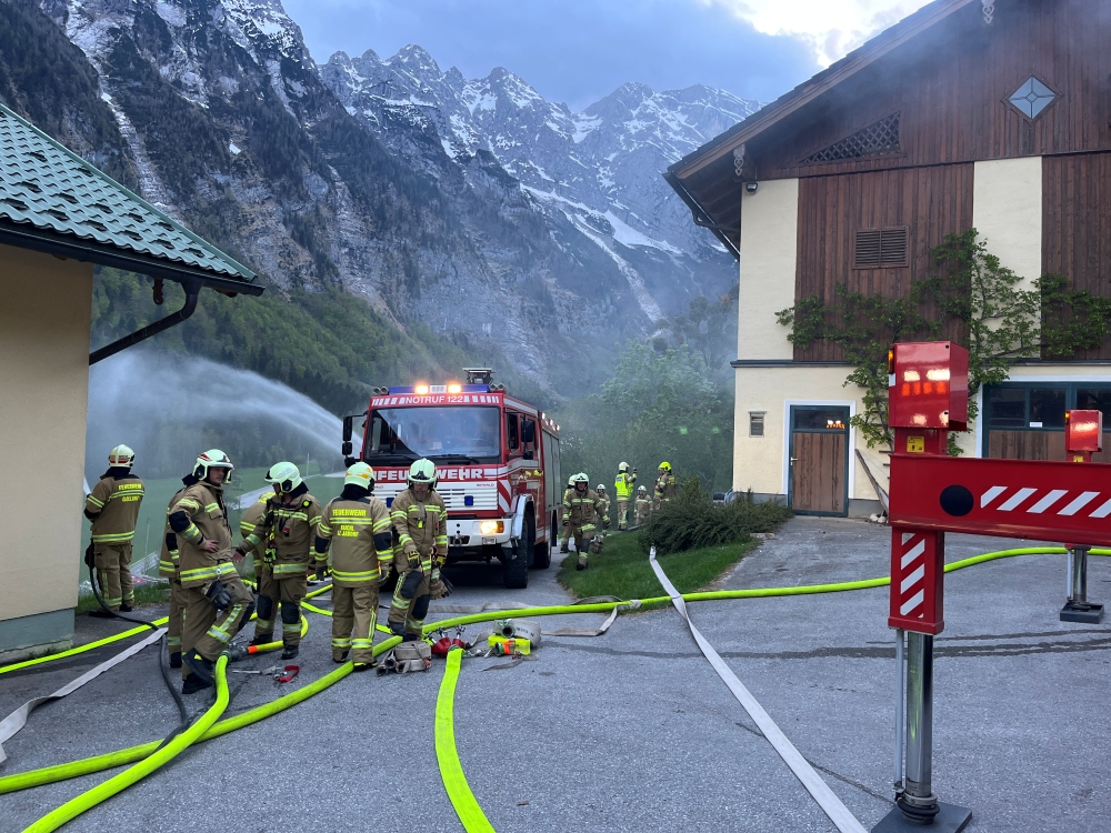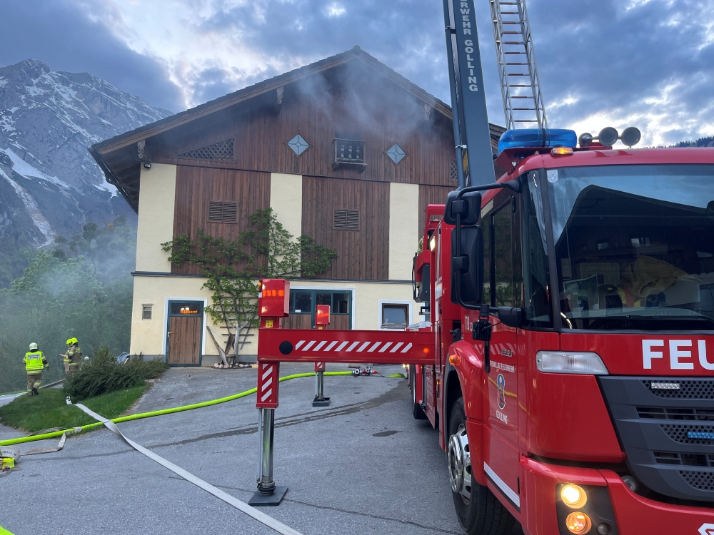 Die Feuerwehr Golling beteiligte sich dabei mit mehreren Fahrzeugen und Aufgaben: Bühne Golling übernahm die Menschenrettung aus dem Obergeschoss des Objektes und führte anschließend die Brandbekämpfung mit dem Wasserwerfer durch. Die Besatzung der Pumpe Golling richtete eine Saugstelle zur Wasserversorgung ein und legte eine mehrere hundert Meter lange Zubringleitung, wobei eine Relaispumpe eingesetzt wurde. Der Atemschutztrupp von Tank 2 konnte mehrere vermisste Kinder aus dem stark verrauchten Heuboden retten.