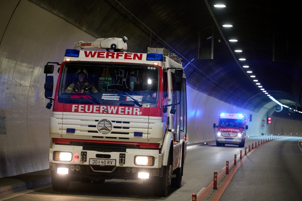 Das lange ersehnte Ende der Generalsanierung der Tunnelkette Golling-Werfen rückt endlich in greifbare Nähe. Für 217 Einsatzkräfte von Feuerwehr, Rettung, Polizei und ASFINAG bildete eine groß angelegte Einsatzübung Donnerstag Nacht nun den Abschluss der Großbaustelle.
