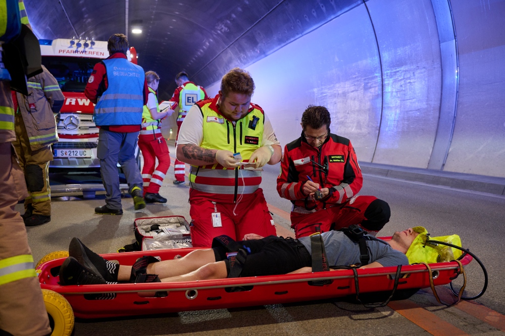 Eine Besonderheit war außerdem, dass erstmals beide Fahrtrichtungen für die Übung gesperrt werden konnten. Dieser Umstand war besonders für die Feuerwehren enorm wichtig, da die Einsatztaktik nur so realitätsnah geübt werden kann. Diese sieht vor, über die Querschläge von der nicht betroffenen Tunnelröhre in die Schadröhre hinüberzuarbeiten und die verletzten Personen auf dem selben Weg in die nicht betroffene Röhre zu evakuieren, wo sie dem Roten Kreuz übergeben werden.