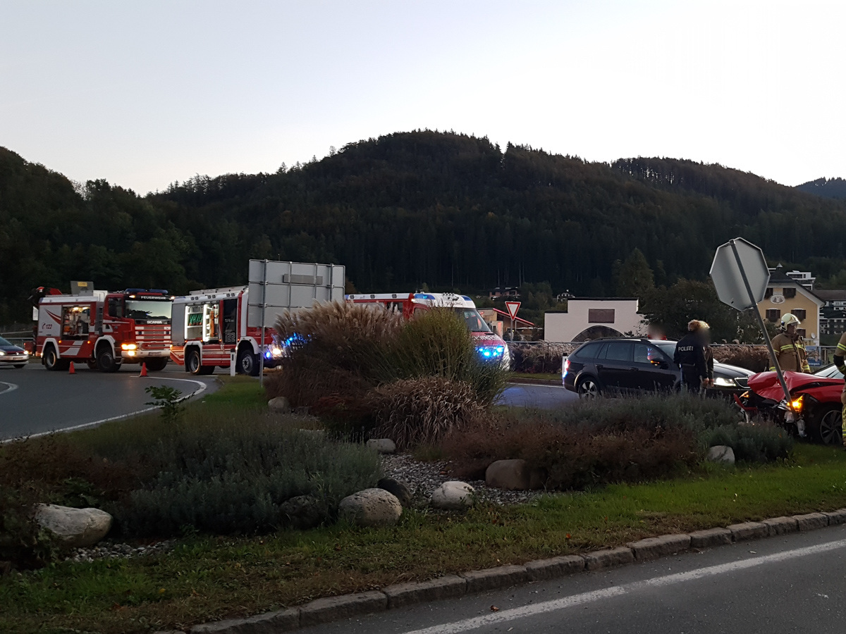 Zwei Fahrzeuge waren im Frühverkehr an der Autobahnzubringerkreuzung B159 zusammengestoßen. Beide Fahrzeuglenker wurden bei diesem Verkehrsunfall leicht verletzt.
