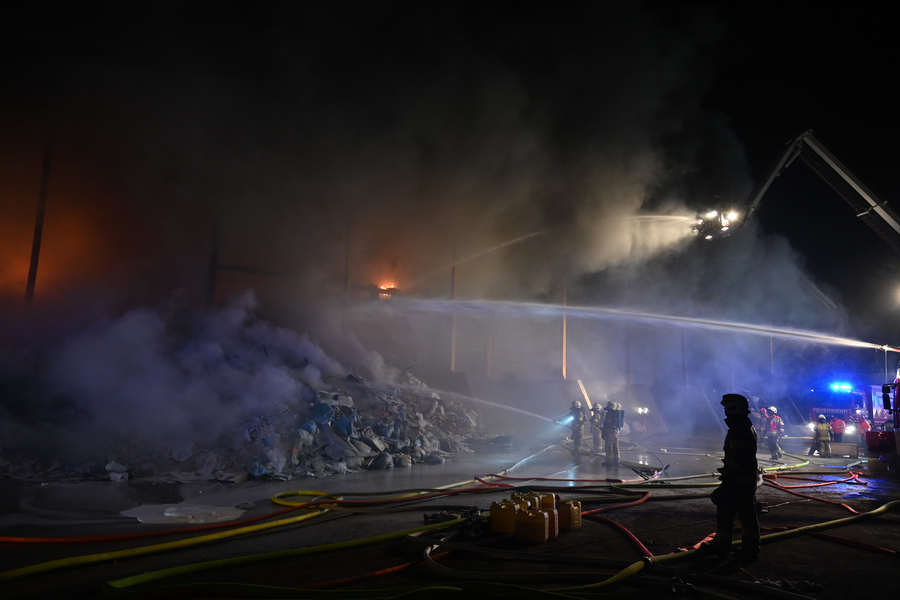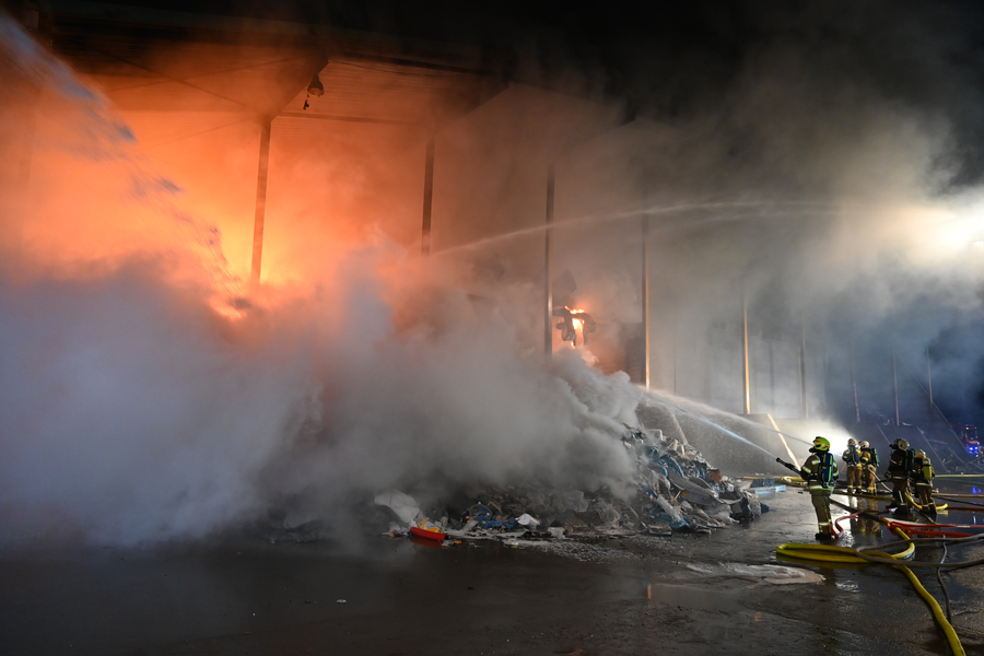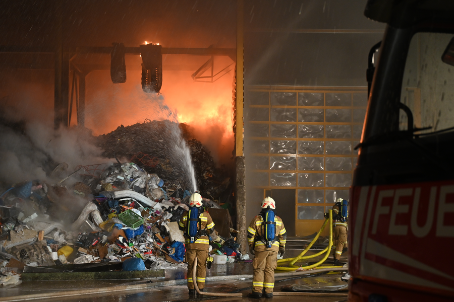 Zu einem Brand in einem Entsorgungsbetrieb kam es am Donnerstagabend in St. Johann. Aus noch ungeklärter Ursache entwickelte sich ein Brand in der Müllsortieranlage. Nach Eintreffen der ersten Einsatzkräfte der Feuerwehr St. Johann wurde durch den Einsatzleiter umgehend auf Alarmstufe 4 erhöht.