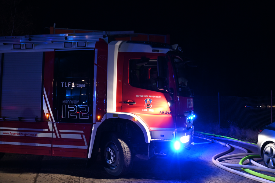 Aufgrund der hohen Brandlast und der damit verbundenen großen Hitzeentwicklung wurde die Feuerwehr Golling um 22:30 Uhr mit dem Löschunterstützungsfahrzeug (LUF 60) nach St. Johann alarmiert. Innerhalb kürzester Zeit rückten Tank 2, Rüst und LUF Golling mit 12 Mann zur Einsatzstelle ab.
