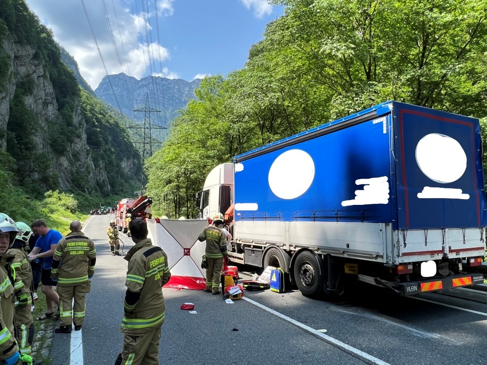Zu einem schweren Verkehrsunfall wurde die Feuerwehr Golling an diesem Mittwoch um 11:35 Uhr alarmiert. Laut der Einsatzmeldung handelte es sich um einen frontalen Zusammenstoß zwischen einem LKW und einem PKW mit einer eingeklemmten Person.