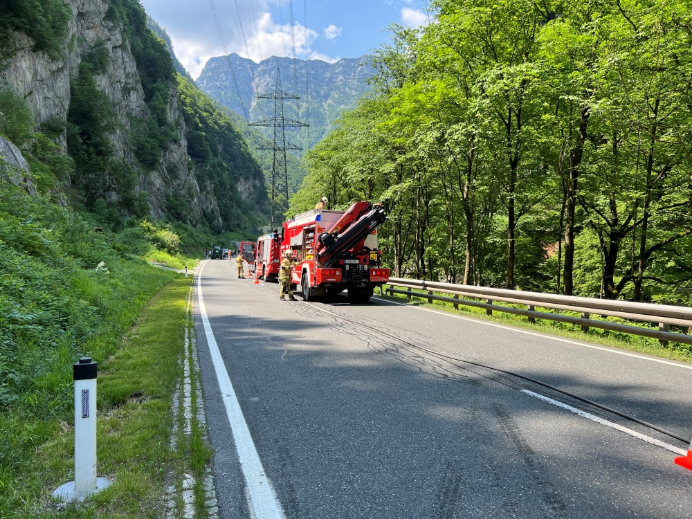Innerhalb kürzester Zeit nach der Alarmierung rückten 20 Einsatzkräfte mit 3 Fahrzeugen zum Unfall auf die Bundesstraße B159 Höhe Pass Lueg ab.