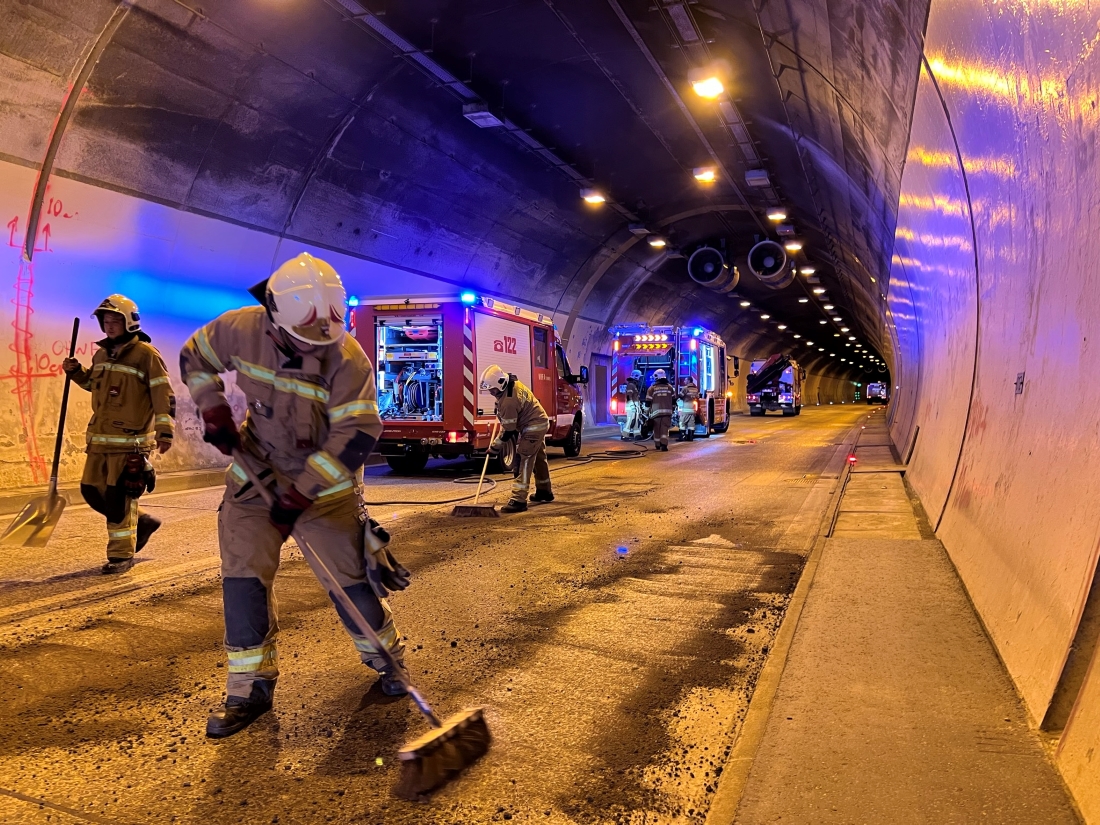 Vor Ort wurde der Brandschutz errichtet und die Unfallstelle abgesichert. Die Fahrzeugbatterien wurden abgeklemmt und im Anschluss Aufräumarbeiten durchgeführt. Nachdem auslaufende Betriebsmittel gebunden und die Fahrbahn gereinigt wurde, konnte der Tunnel wieder für den Verkehr freigegeben werden.