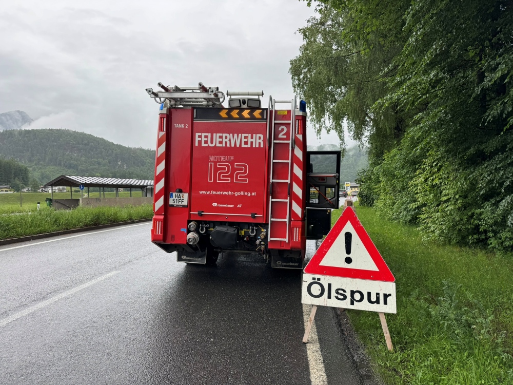Am Donnerstagabend um 17:30 Uhr wurde die Bereitschaftsgruppe 1 der Feuerwehr Golling zu einem Öleinsatz auf der Bundesstraße B159 im Bereich des Autobahnzubringers alarmiert.