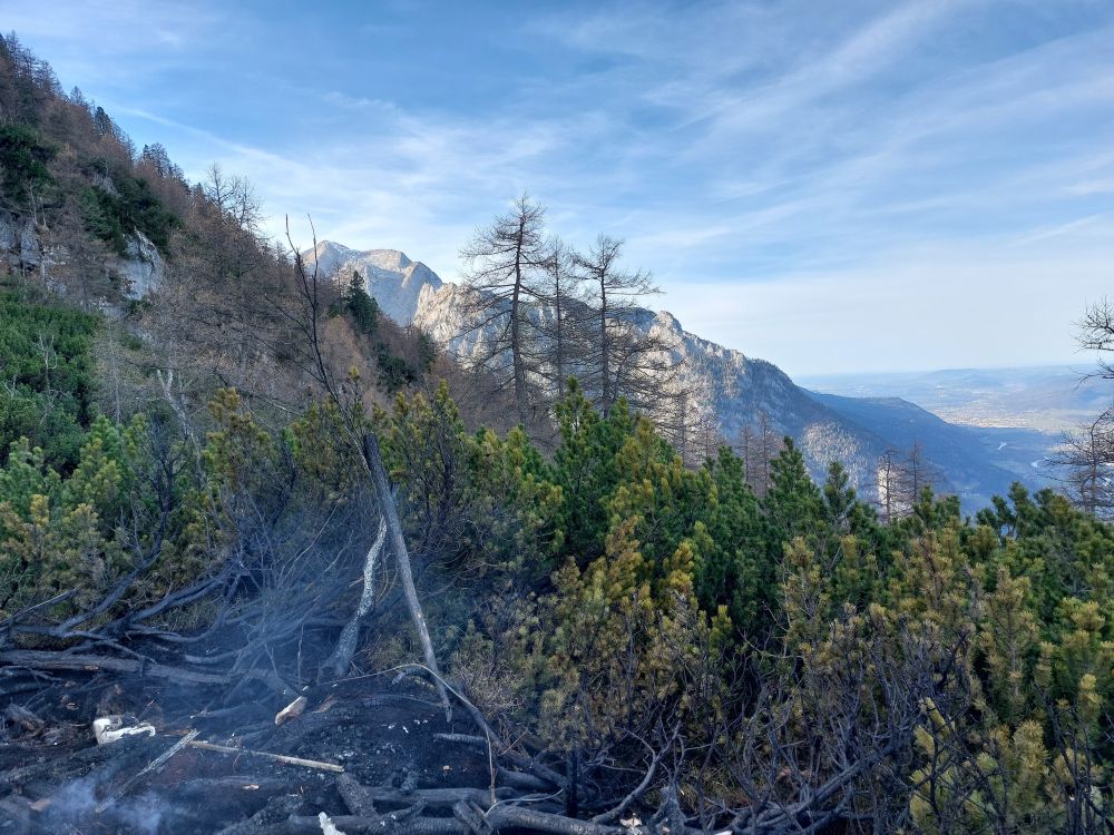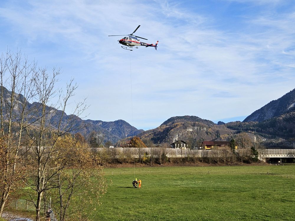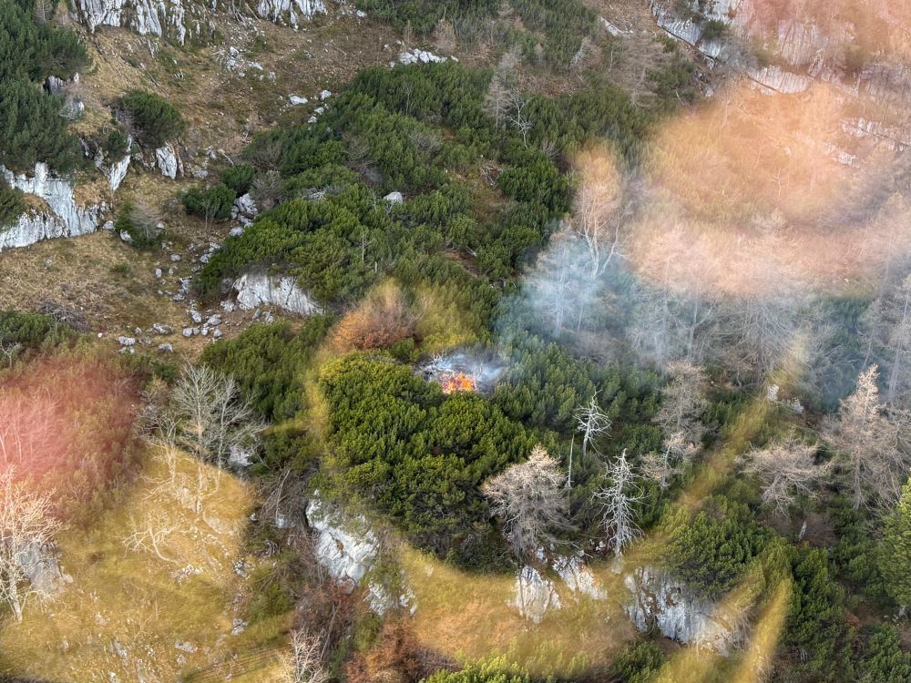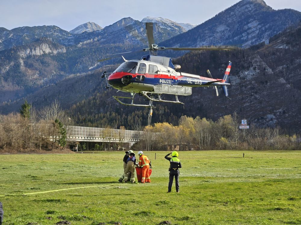 Der Polizeihubschrauber musste nach weiteren gezielten Löschwasserabwürfen ebenfalls kurz einen Bergungseinsatz am Trattberg absolvieren.