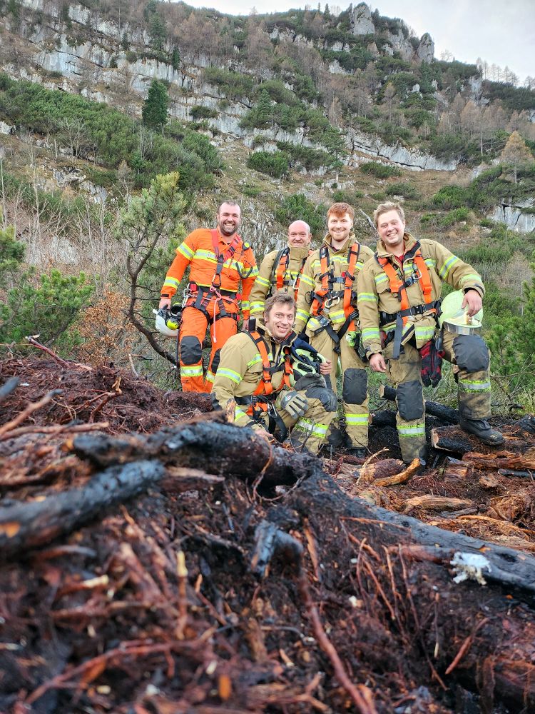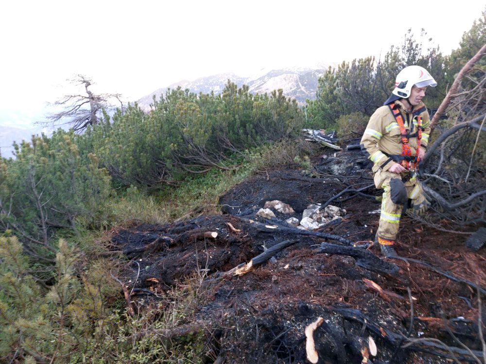 Nach rund 4 Stunden konnte endgültig „Brand aus“ gegeben werden. Bergmannschaft und Material wurden vom frisch betankten Polizeihubschrauber wieder ins Tal geflogen.