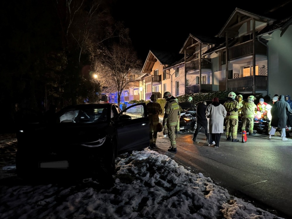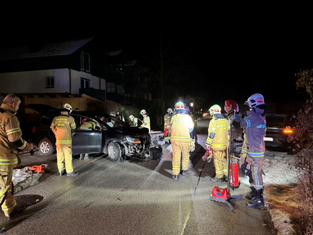 Da sich zu diesem Zeitpunkt noch zahlreiche Mitglieder beim kameradschaftlichen Ausklang nach der letzten Übung des Jahres befanden, konnte innerhalb kürzester Zeit mit drei Fahrzeugen zur Einsatzstelle ausgerückt werden. Vor Ort zeigte sich ein Verkehrsunfall mit zwei beteiligten Fahrzeugen. Eine Person mit Verletzungen unbestimmten Grades befand sich noch in einem der PKW. Das Rote Kreuz sowie die Polizei waren bereits eingetroffen.