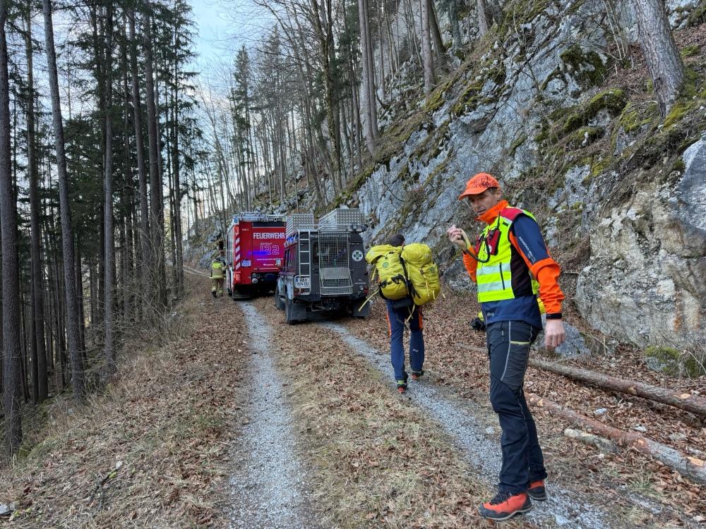 Nach dem Eintreffen am Einsatzort stieg ein Teil der Mannschaft umgehend zum Verletzten in das steile Gelände auf, um die Erstmaßnahmen zu unterstützen. Parallel dazu trafen die Einsatzkräfte der Bergrettung sowie das Team des Notarzthubschraubers ein. Nach der medizinischen Erstversorgung durch das Notarztteam wurde der Patient von der Bergrettung mittels Bergetrage und unter einer Seilsicherung zur Forststraße abgelassen.