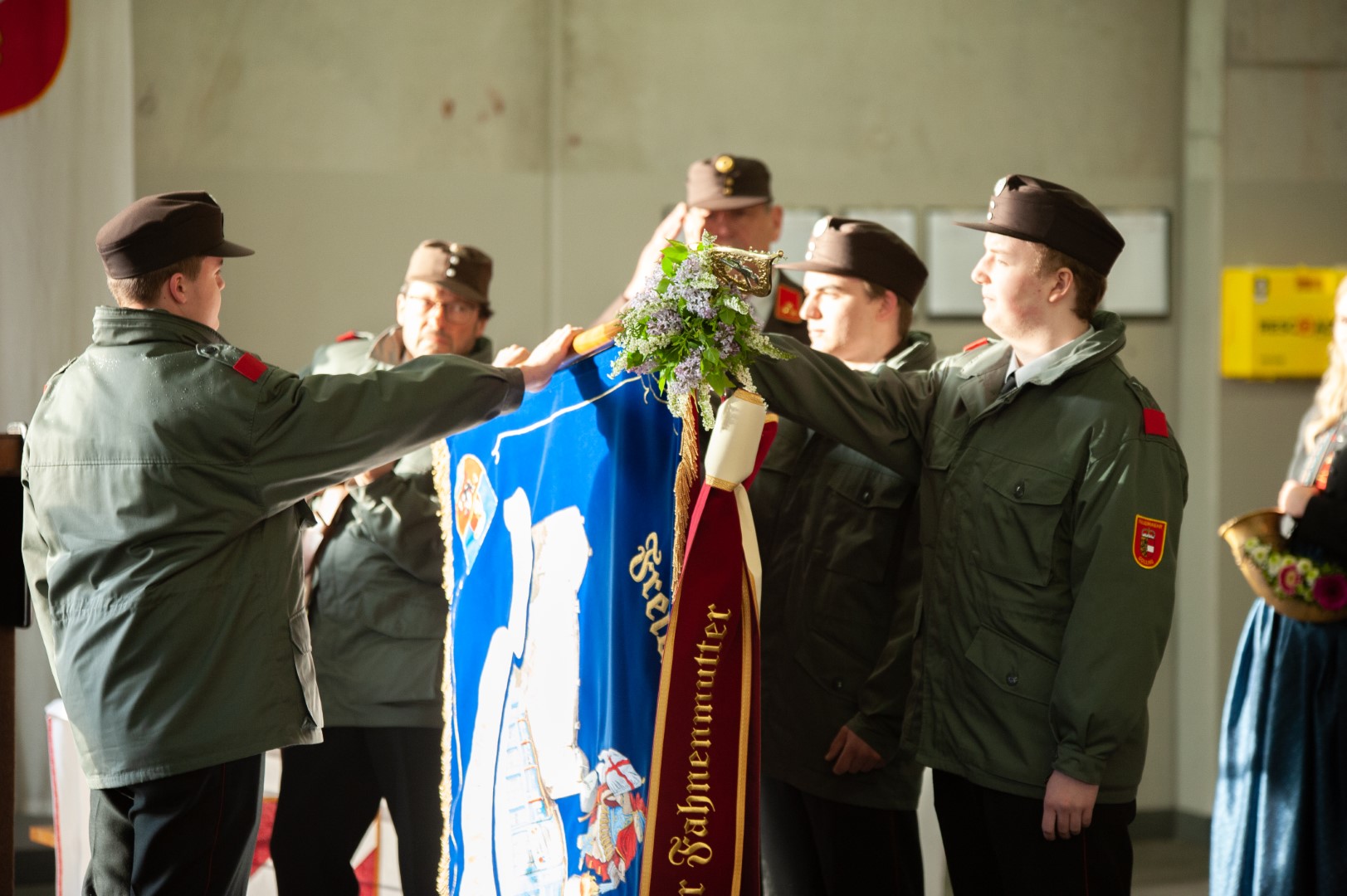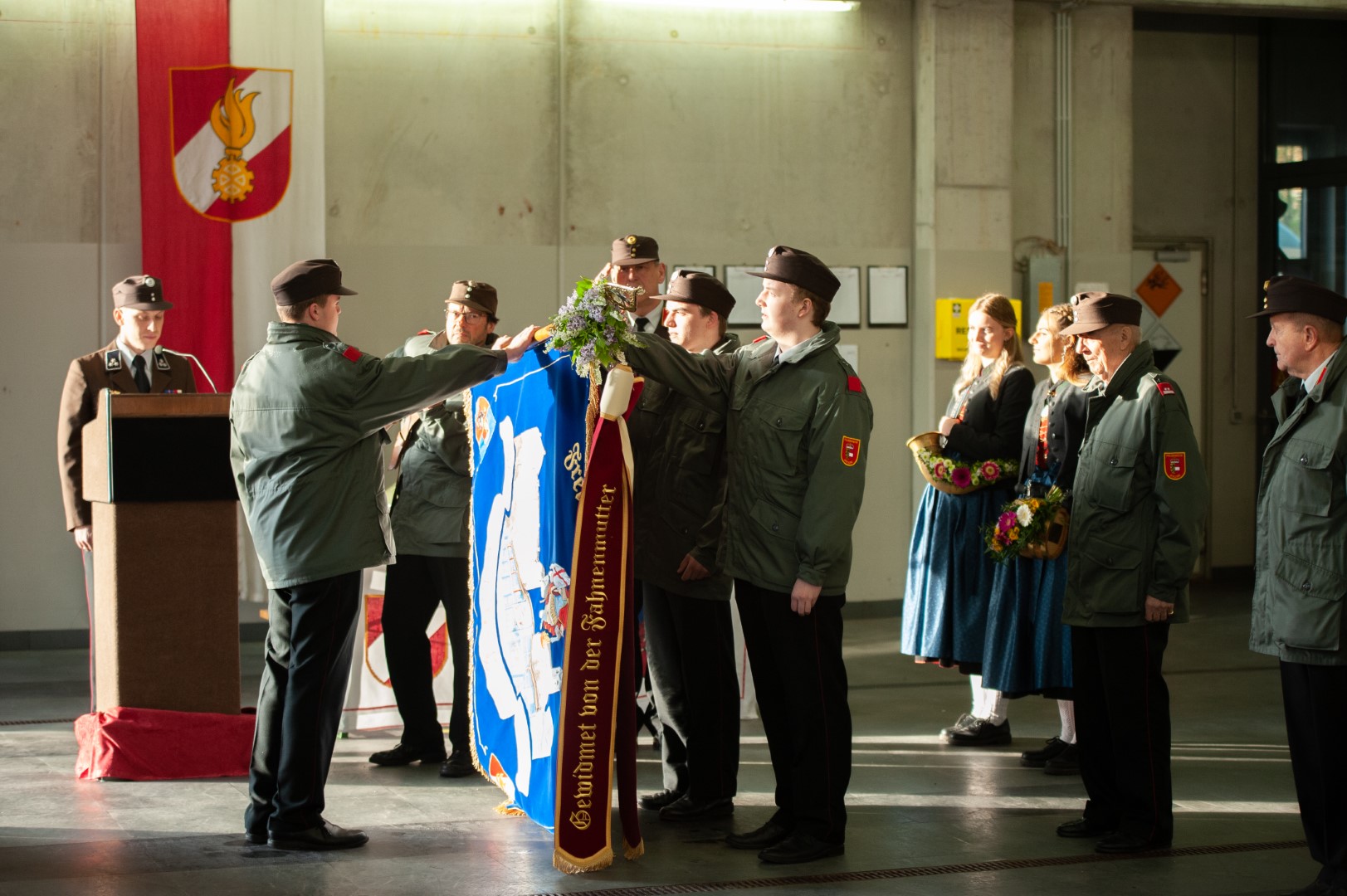 Die Florianifeier wurde auch zum Anlass genommen, zwei Jugendfeuerwehrmann, Florian Hollweger und Moritz Gsenger, in den aktiven Dienst zu überstellt.