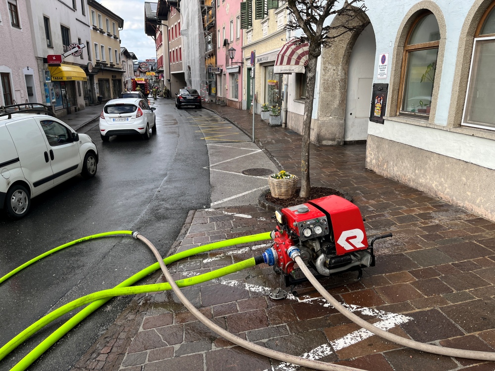 Erst bei der Reinigung mit Hochdruckrohre zeigt sich, wie viel Schmutz sich im Laufe des Winters in Asphalt und Pflasterfugen ansammelt. Mit vereinten Kräften sorgten aktive sowie nichtaktive Mitglieder der Feuerwehr dafür, dass der Gollinger Markt wieder in neuem Glanz erstrahlt. Trotz des laufenden Verkehrs konnten die Arbeiten zügig und effizient durchgeführt werden.