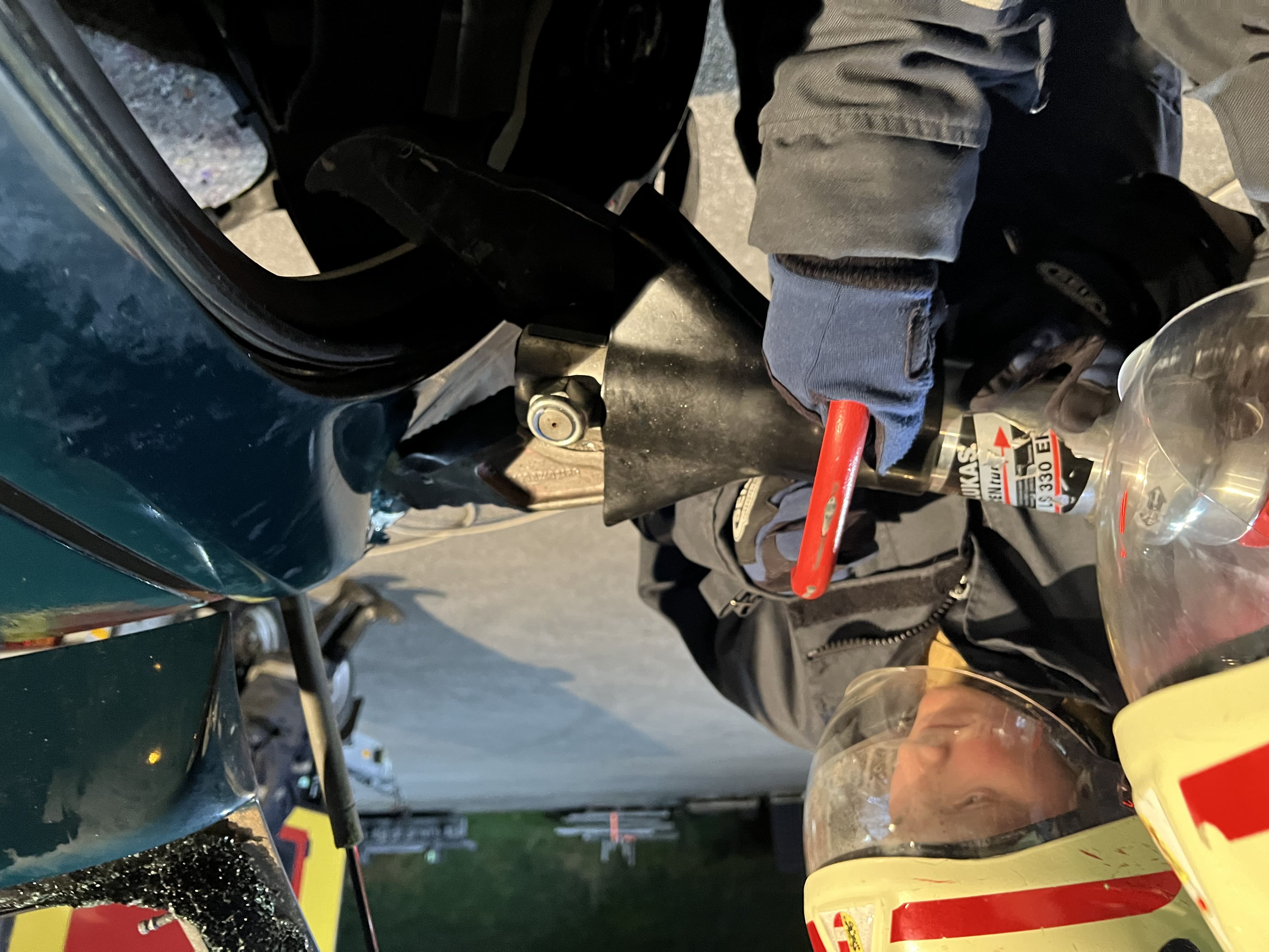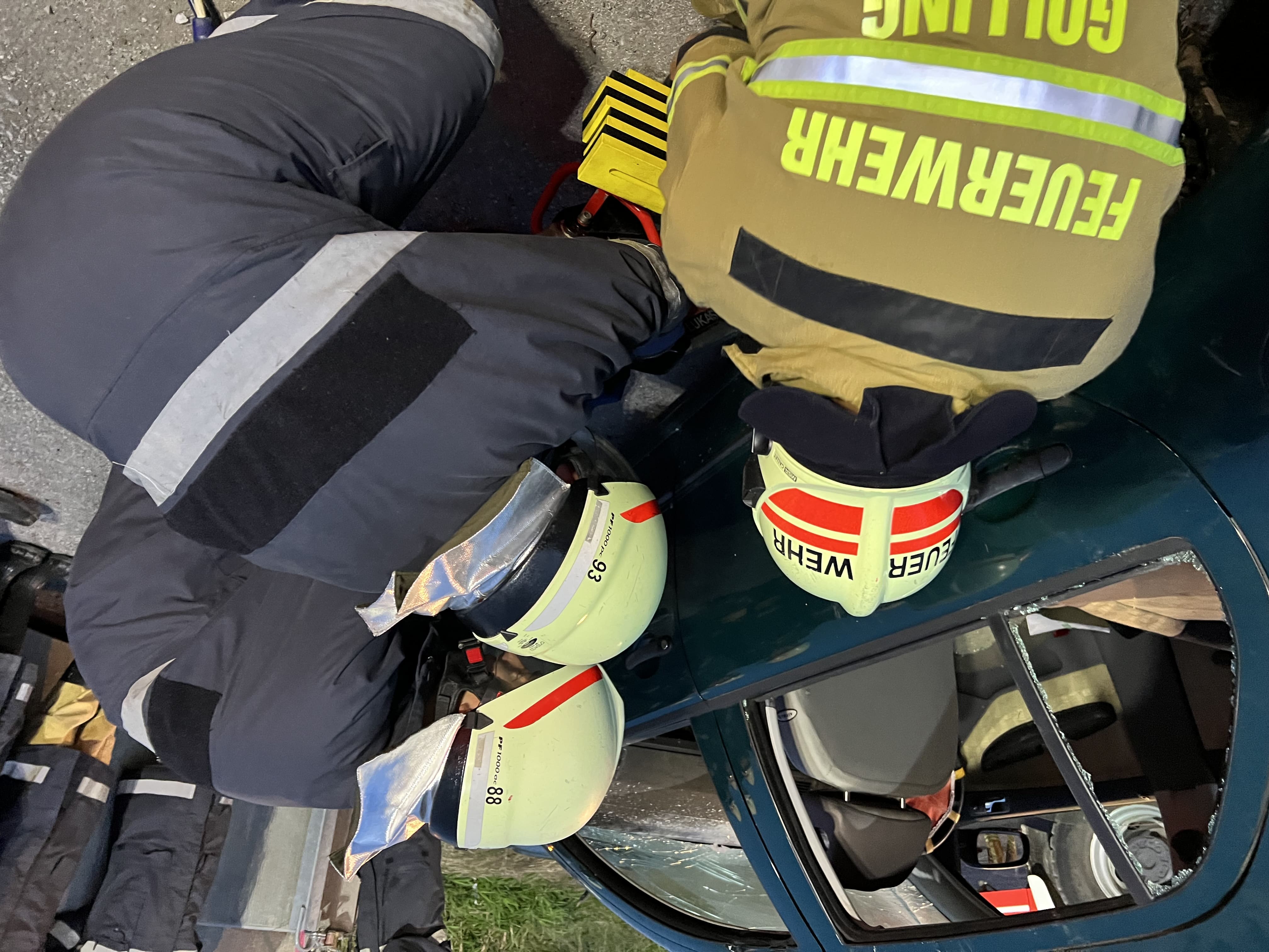 Nach einer kurzen Einschulung an den Rettungsgeräten und den Sicherheitsmaßnahmen wurde damit begonnen, das Fahrzeug sorgfältig zu "zerlegen". Jeder Schnitt wurde besprochen, um ein effizientes Ergebnis zu erzielen - Spreitzer, Schere, Glasschneider und der Kran unseres schweren Rüstfahrzeuges kamen bei dieser Übung zum Einsatz. Nach mehr als einer Stunde wurde diese Übung erfolgreich beendet, die verletzte Person konnte aus dem Fahrzeug befreit werden.