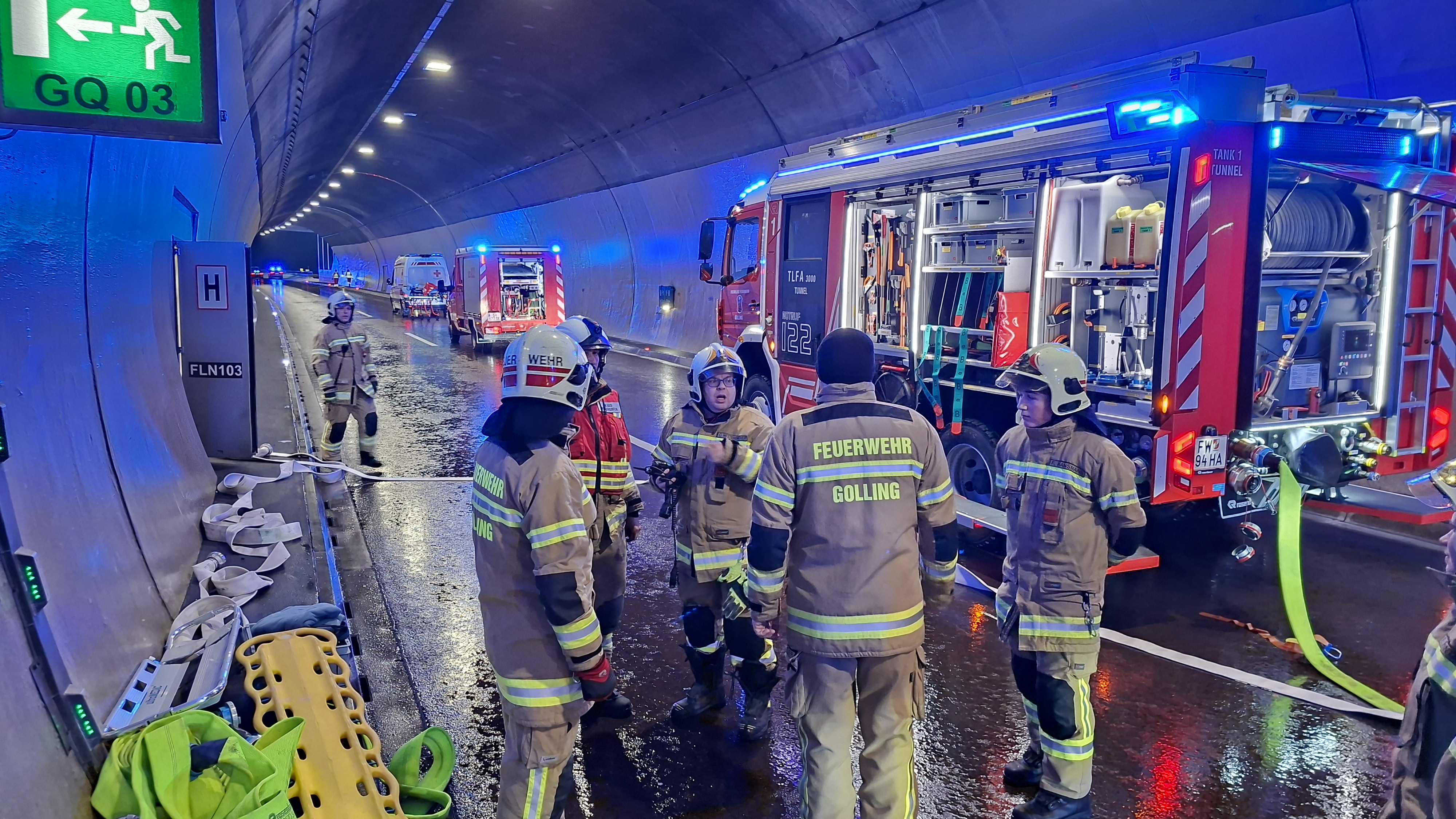 Am 09.01.2026 wurde die Freiwillige Feuerwehr Golling gemeinsam mit den Feuerwehren Pfarrwerfen und Werfen gegen 18:00 Uhr zu einem Brandereignis im Brentenberg Tunnel alarmiert.