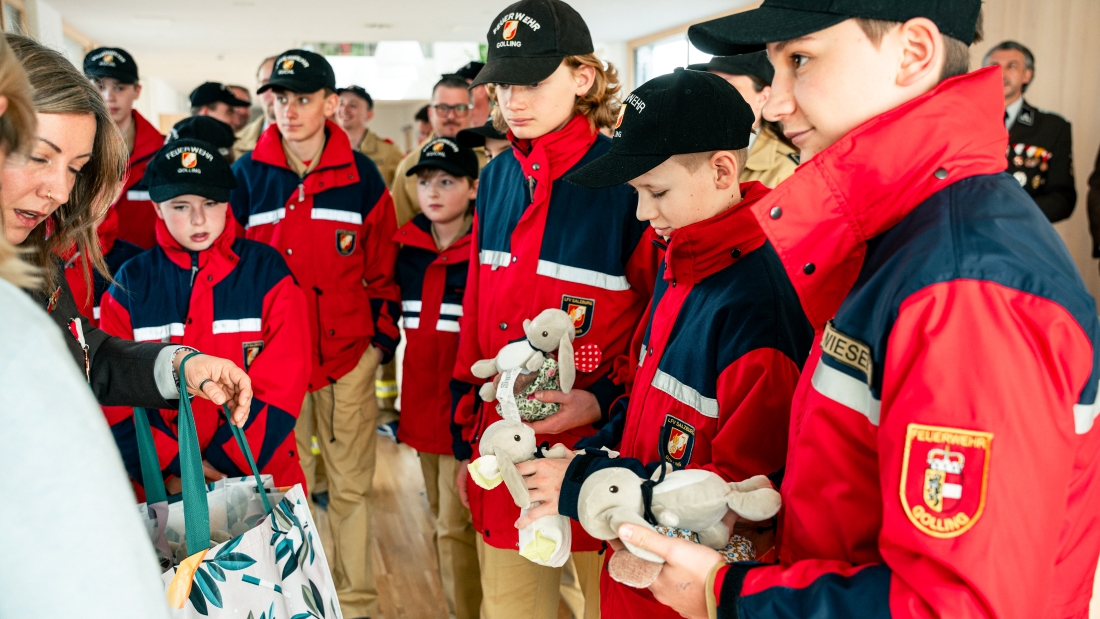 Am Freitag, dem 27. März 2026, war es wieder so weit: Die Feuerwehrjugendgruppen aus den Gemeinden Golling und Kuchl begleitet vom Referatsleiter Feuerwehrjugend im Österreichischen Bundesfeuerwehrverband BFR Manfred Eibl, Landesjugendreferent ABI Albert Brandstätter und Bezirkssachbearbeiterin Feuerwehrjugend Bezirk Tennengau OVI Marlene Bischof, besuchten die Bewohnerinnen und Bewohner und überbrachten die Grüße des Osterhasen.
