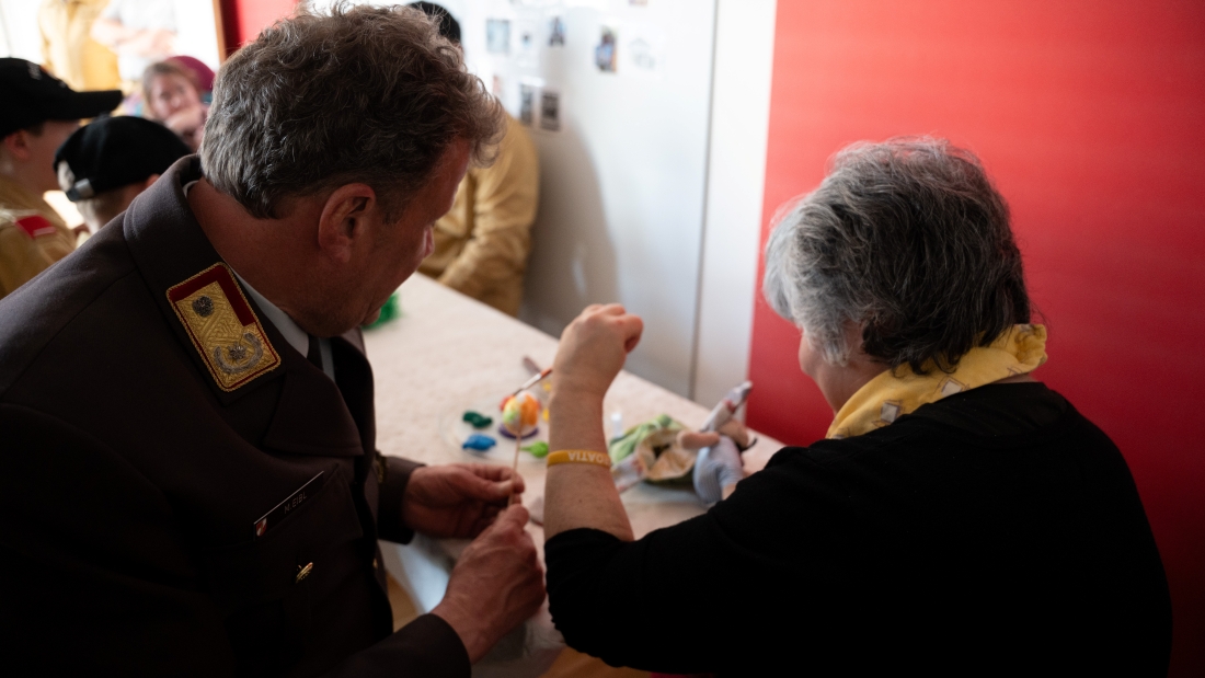 Auch in diesem Jahr wurden wir von der Leiterin, Frau Mag. Kerstin Grill, LLB.oec und erstmals von der neuen pflegerischen Leitung Frau Simone Saringer-Siegl , BScN MSc ANP in den Räumlichkeiten des Konradinums herzlich begrüßt. Mit viel Freude und Begeisterung gaben Frau Grill und Frau Saringer den anwesenden Jugendlichen und Gästen einen kurzen Überblick über die Einrichtung. Anschließend verteilten sich die Mitglieder der Feuerwehrjugend auf die unterschiedlichen Wohnbereiche der Bewohnerinnen und Bewohner und übergaben die Ostergeschenke.